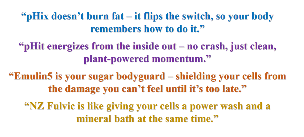 With pHix, pHit, Emulin5, and NZ Fulvic, you’re not just taking supplements.